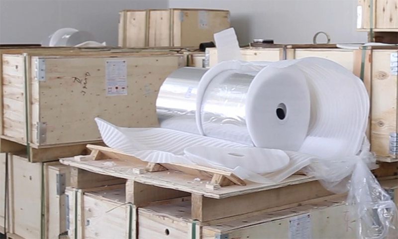 Un rouleau de film d'operculage est enveloppé d'un film plastique protecteur, et 3 rouleaux sont emballés dans un carton. La taille du carton est fonction de la taille du rouleau, selon les exigences du client.