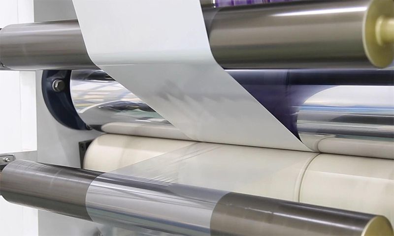 L'atelier de pelliculage ou laminage est équipé de 2 pelliculeuses entièrement automatiques (machine de pelliculage à sec à haute vitesse HGF-650). Après le pelliculage, le film d'operculage est soumis à un processus de durcissement à 150℃. Grâce à la technologie de positionnement au laser et à la colle de qualité première importée de Corée, le papier, le plastique et la feuille d'aluminium sont laminés ensemble de manière étroite et précise. Cette technique permet de garantir une excellente durabilité et le respect de l'environnement.